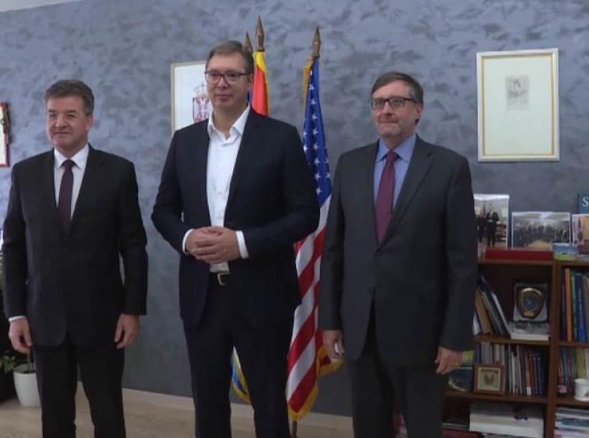 Vučić je u nedjelju doputovao iz Washingtona u Brisel, gdje se sastao sa specijalnim izaslanikom EU za dijalog Beograda i Prištine Miroslavom Lajčakom i specijalnim izaslanikom američkog državnog sekretara za Zapadni Balkan Matthewom Palmerom.
