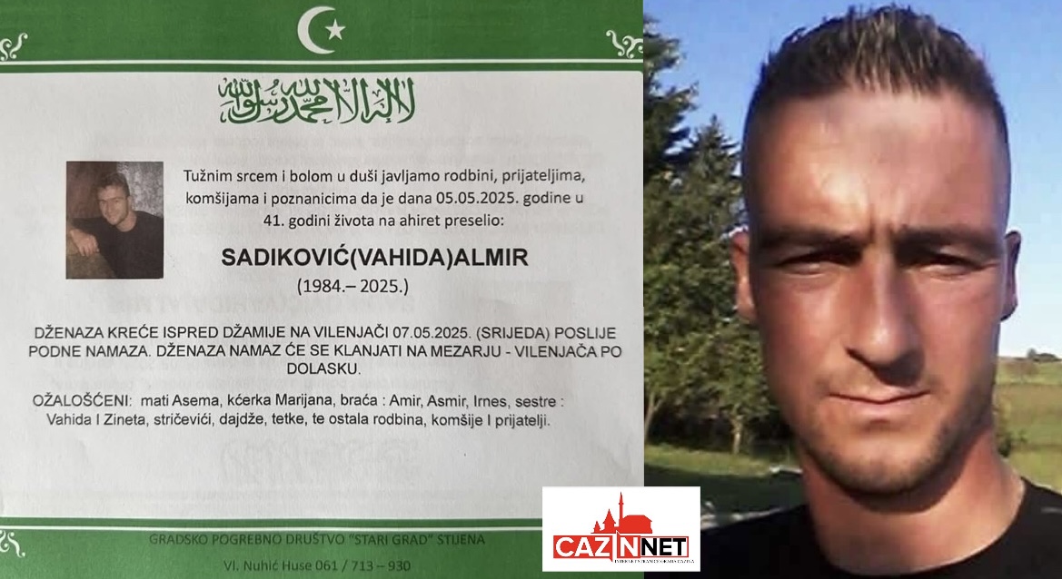 U naselju Vilenjača danas će se klanjati dženaza-namaz tragično nastradalom Almiru Sadikoviću, koji je na ahiret preselio 5. maja 2025. godine, u 41. godini života. Dženaza kreće ispred džamije na Vilenjači, nakon podne-namaza, a klanjat će se na mezarju Vilenjača po dolasku.