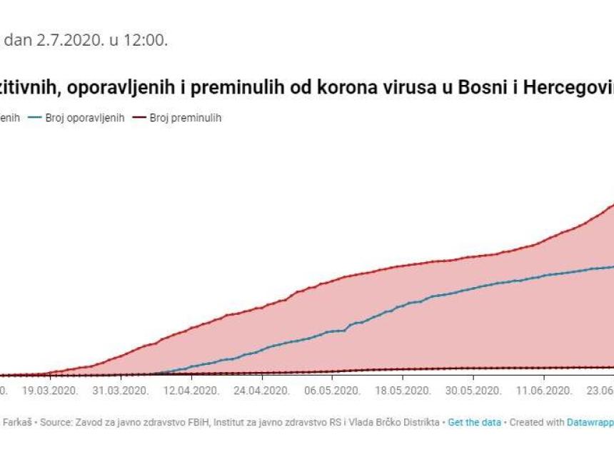 Kada je u pitanju Republika Srpska, danas je testirano 311 uzoraka i korona virus je potvrđen kod 59 osoba. Preminulo je 125 osoba, a oporavilo se 1.343. Ukupno je testirano 37.575 osoba i potvrđeno je 2.372 slučajeva.