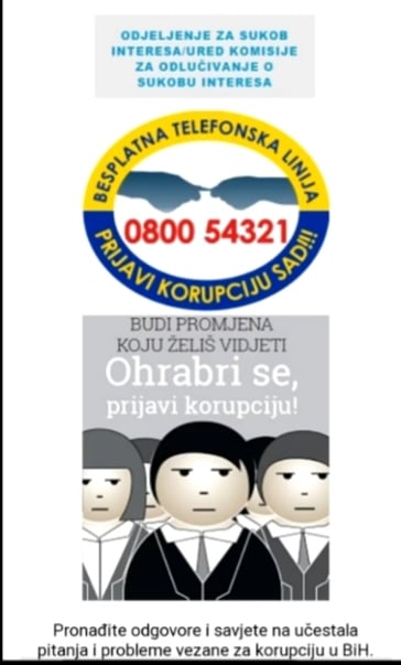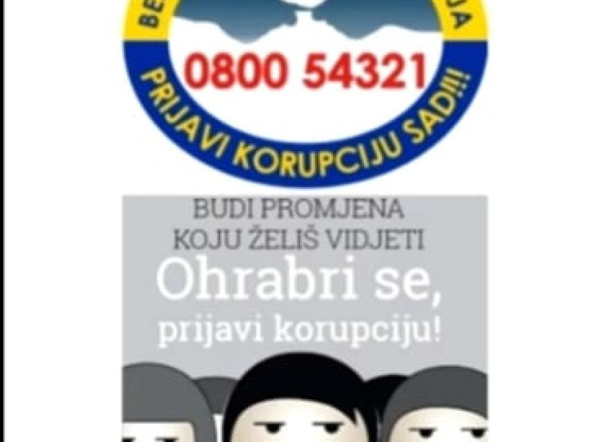Napominje se da svaki vid korupcije prijavite na besplatnu telefonsku liniju 0800 54321