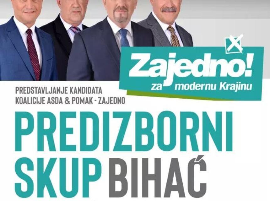Koalicija A SDA POMAK Zajedno će održati završno predstavljanje svojih kandidata sa lista za sve nivoe, na predizbornom skupu danas u Bihaću, na Gradskom trgu, sa početkom u 18:00 sati uz bogat zabavni program.