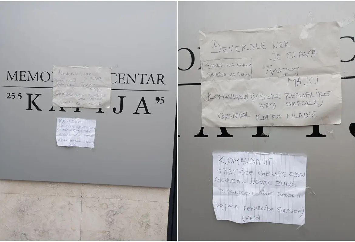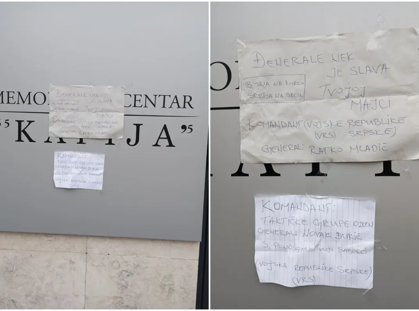"Petrović je osumnjičen da je u periodu od 31. marta do 27. maja 2024. godine na javnim mjestima, izlozima trgovinskih radnji, automobilima, frizerskom salonu, kao i na betonskom stubu na kojem se nalazi ploča Memorijalnog centra Kapija u Tuzli , znajući da su međunacionalni odnosi u FBiH složeni, pisao poruke na papirima i ljepio ih na ovim javnim mjestima, a kojima odobrava i veliča zločine počinjene u periodu rata prema konstututivnim narodima u FBiH", navedeno je iz Tužilaštva TK.