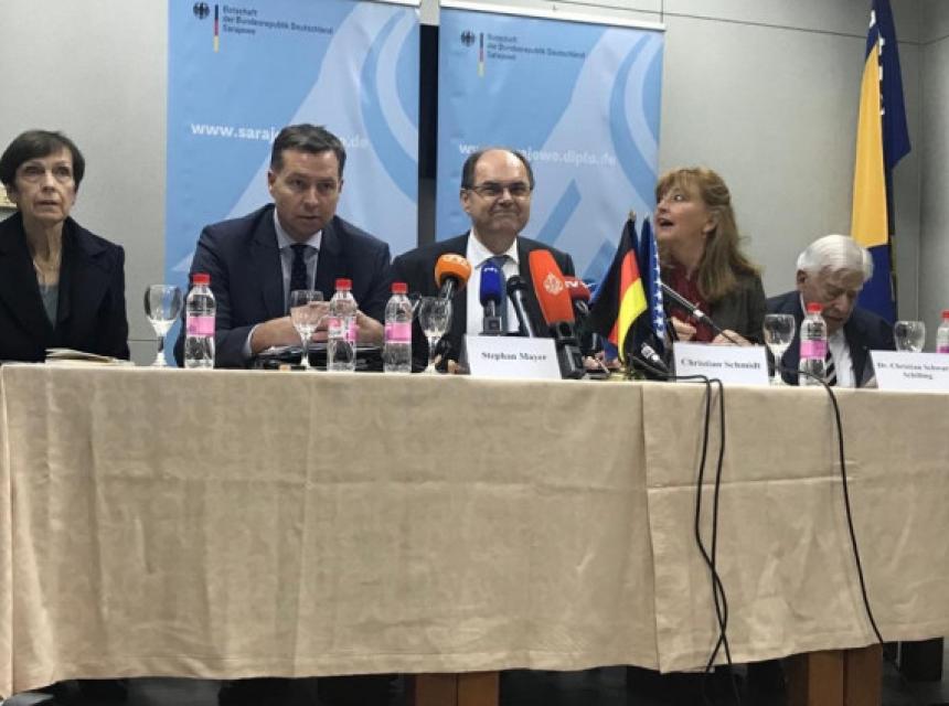 - Želim da vam kažem da sam došao s Majerom u Sarajevo na molbu savezne vlade, odnosno kancelarke kako bi ovdje razgovarali s nadležnima o teškoj situaciji, tj. migrantskoj krizi u BiH. U našoj pratnji je i doktor Kristijan Švarc-Šiling (Christian Schwarz-Schilling), koji je bio vrhunski predstavnik u BiH, te je tako vrhunski poznavalac zemlje. BiH, koja traži put ka evropskim integracijama i NATO-u, ima pravo da koristi zajednička iskustva najviše nas, Nijemaca, koja koristimo kako bismo doprinijeli rješenjima. Priliv migranata je stvar koja se odnosi na cijelu državu, na oba entiteta, a nikako da je stvar jednog entiteta - istakao je Šmit.