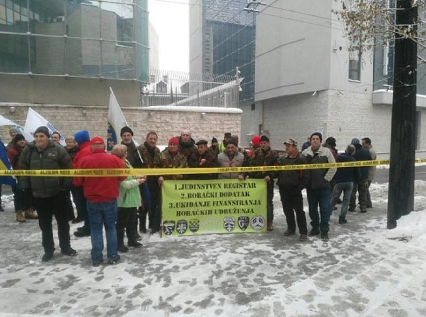 Nekolicina demobilisanih boraca okupila se danas ispred zgrade Paralamenta FBiH, uoči početka zasjedanja Predstavničkog doma.