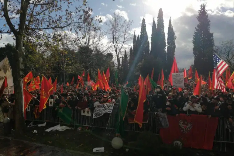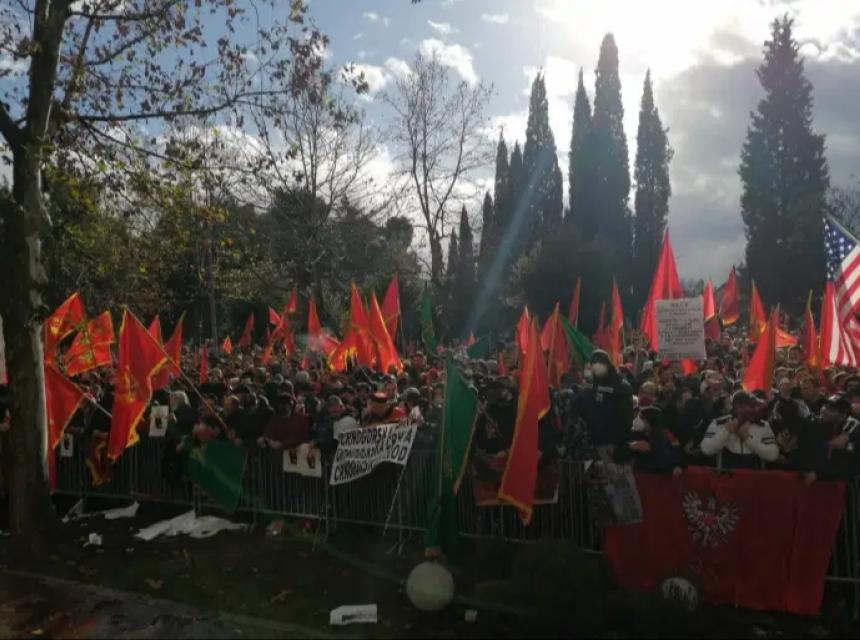Grupa građana okupila se ispred parlamenta Crne Gore, protestujući protiv najavljenih izmjena Zakona o slobodi vjeroispovijesti.