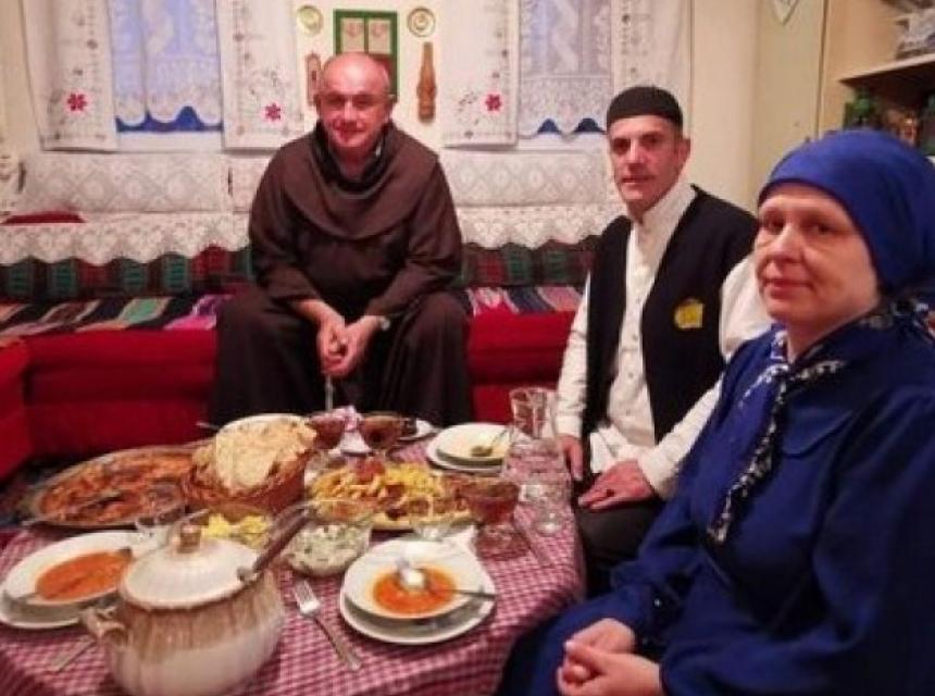 Osamnaeste večeri ramazana Salem Šehović je na iftaru u muzeju i sahat-kuli ugostio fra Mirka Majdandžića, gvardijana samostana u Fojnici.