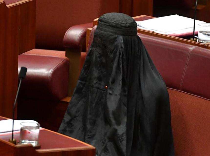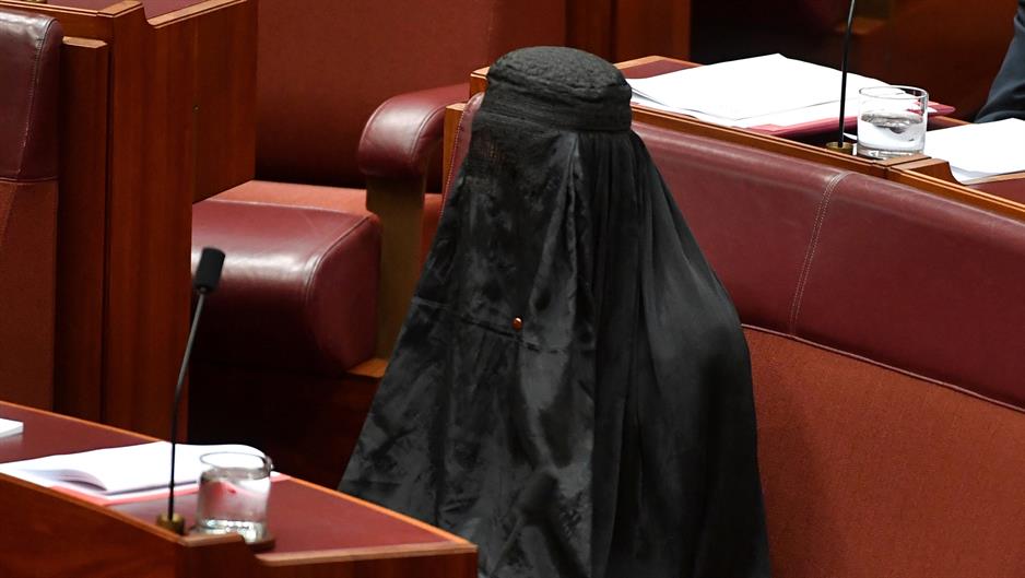 Australijski senator Pauline Hanson nosila je danas burku u parlamentu u okviru svoje kampanje za zabranu odjevnih predmeta koji pokrivaju cijelo tijelo, poput ove tradicionalne muslimanske odjeće.