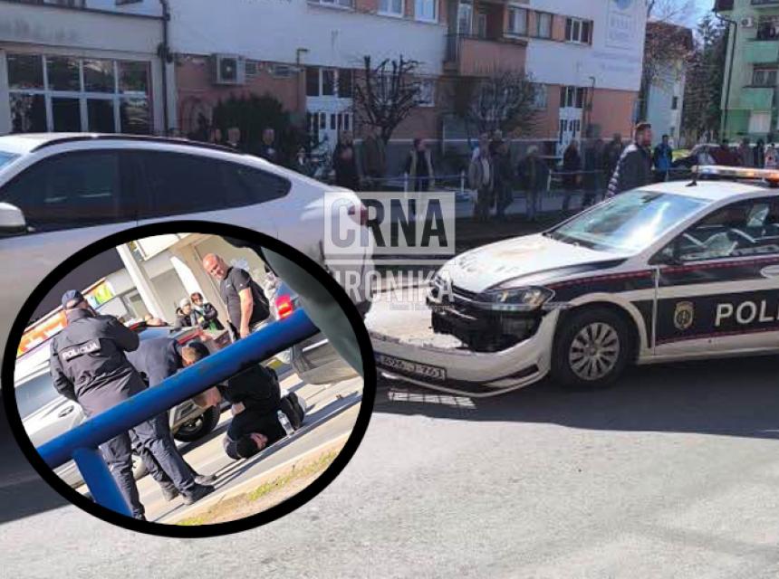 Tokom svog bijega je udario i u policijsku patrolu te je napravio štetu na vozilima.