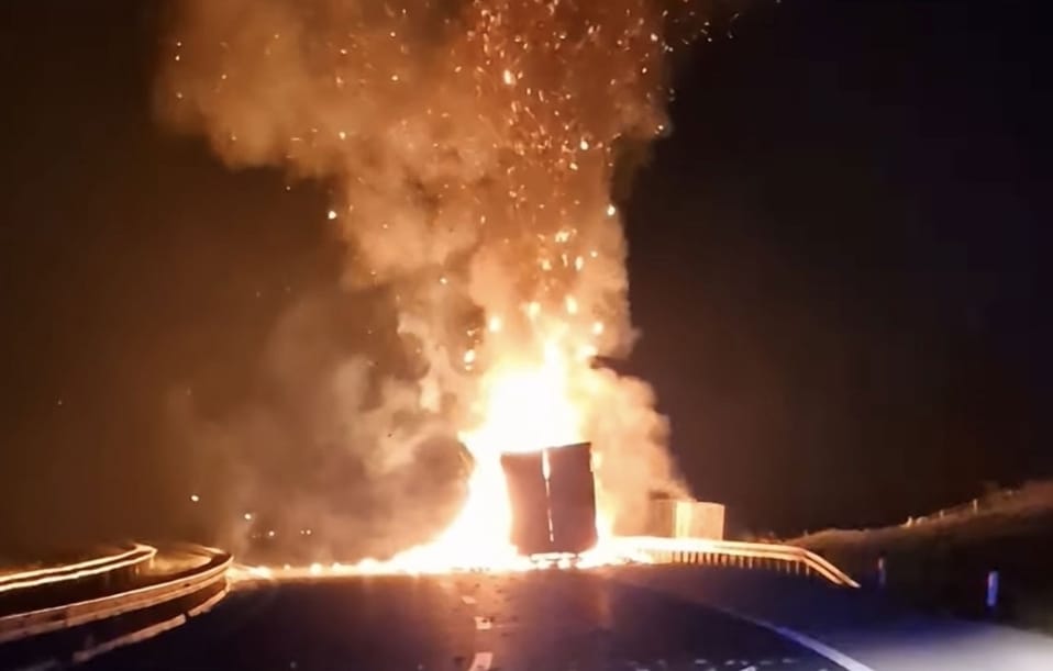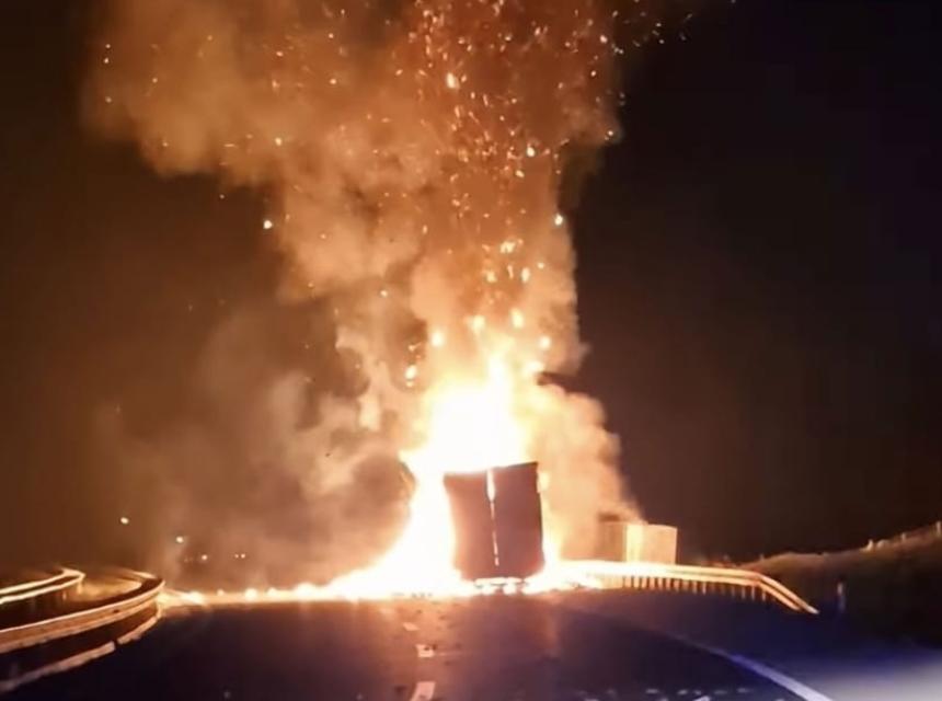 Vozač koji je upravljao kamionom je, nakon što je uočio da je izbio požar na prikolici, zaustavio kamion i otkačio priključno vozilo.