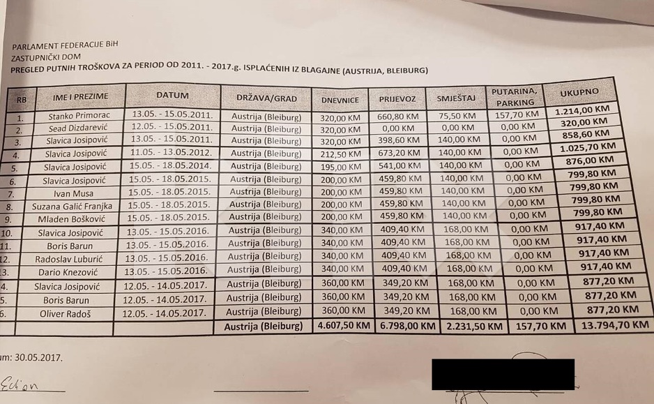 No, detalji se nalaze u pregledu putnih troškova isplaćenih iz blagajne Parlamenta Federacije BiH, gdje se navodi da je Suzana Galić-Franjka boravila u Bleiburgu od 15. do 18. maja 2015. godine, u vrijeme kada se obilježava godišnjica okarakterisana kao najveći fašistički skup u Evropi.