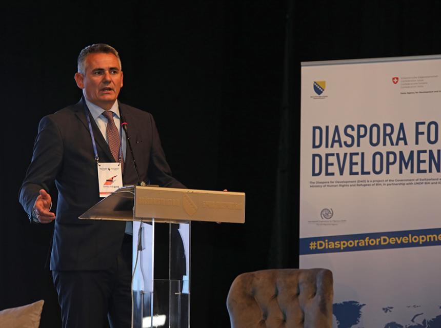 Rezidentna predstavnica UNDP-a u Bosni i Hercegovini Steliana Nedera, govorila je o važnosti angažmana dijaspore za lokalni razvoj, te kako čvrsto vjeruje da se djelotvorno angažiranje dijaspore oslanja na dvosmjernu komunikaciju i stvaranje održivih sistemskih rješenja, a koristi se postižu samo ako se zajednički radi na zajedničkim razvojnim ciljevima.