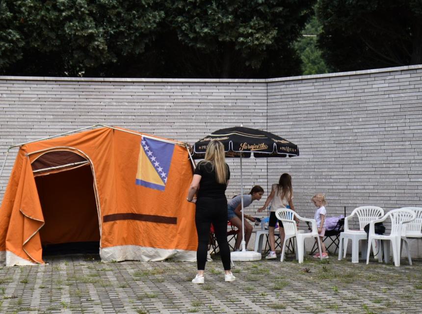 Nakon što je na njenu prijavu za posao ponovo stigao negativan odgovor Edita Hrelja postavila je šator pored centralnog spomen – obilježja braniocima Goražda, gdje je uklesano i ime njenog oca.