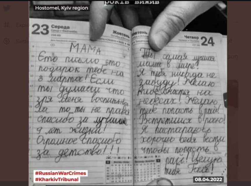 Lesia Vasilenko na svom Twitter profilu objavljuje zastrašujuće vijesti i svjedočanstva iz Ukrajine. Sada je objavila pismo dječaka koji je navodno bio s majkom u automobilu kada im je auto propucan ruskim mecima.