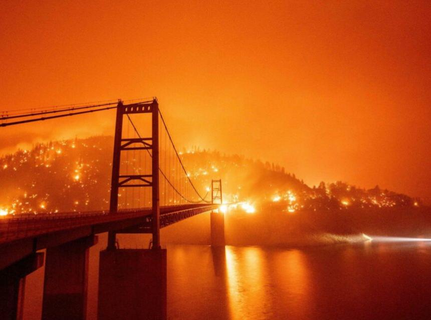 Posebno su zastrašujući prizori oko mosta San Francisco Bay Bridge, koji je praktički obavijen dimom koji zaklanja sunčevu svjetlost. Štoviše, cijeli je grad San Francisco (čije metrpolitansko područje ima gotovo 5 miliona ljudi) u dimu.