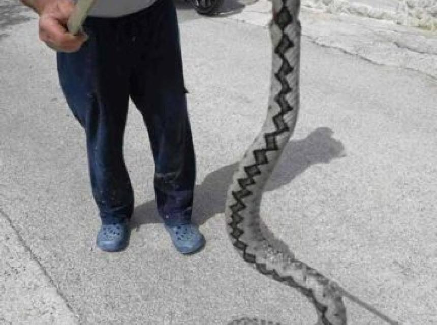 – Moja žena i majka sjedile su oko podne u dvorištu ispred kuće i ugledale ogromnog poskoka koji je puzao prema njima, a pretpostavljamo da se htio skriti od sunca i zavući u podrum. Srećom su obje bile pribrane pa su izmaknule stolice i njima lupale po tlu pa se prvo počeo izmicati od tapkanja, a žena je dohvatila metlu kojom je izbacila otrovnicu na ulicu – priča Turić dodavši da je poskok bio jako trom te se sklupčao nasred ceste.