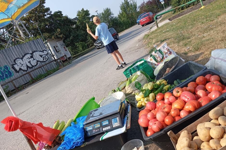 Faris, koji pomaže u proizvodnji i berbi voća i povrća, svake subote postavlja improvizovani štand ispred stadiona na Koševu, gdje nudi razne domaće proizvode poput paradajza, krastavaca, krompira, šljiva, kukuruza i paprike.