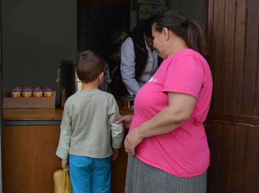 "Otac mu je godinama na birou, ne može naći posao. Pokušava se snaći, ko i mi svi, ali je teško. Zato je Imran došao po hranu za cijelu porodicu", kazuje Pašana Husanović, dok slavljeniku u šerpu sipa hranu poslanu sa druge strane kantona.