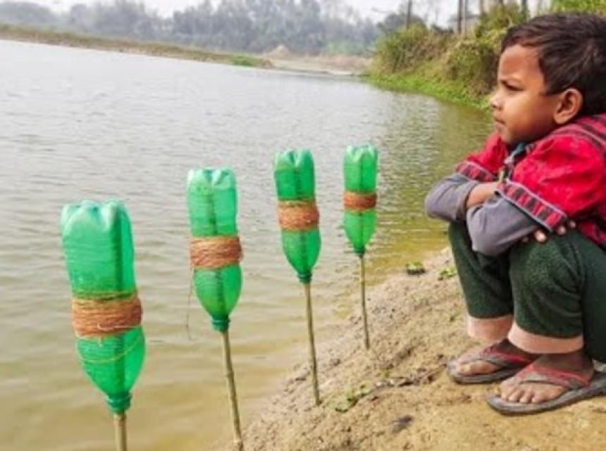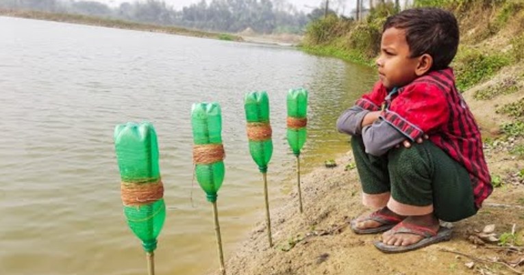 Klinac je pokazao iznimnu vještinu u onome što radi, iako je još dijete. Jednostavno je pecao ribu koristeći samo nekoliko štapova, užad s udicama i prazne plastične boce. Imao je još i malo tijesta koje je koristio kao mamac.