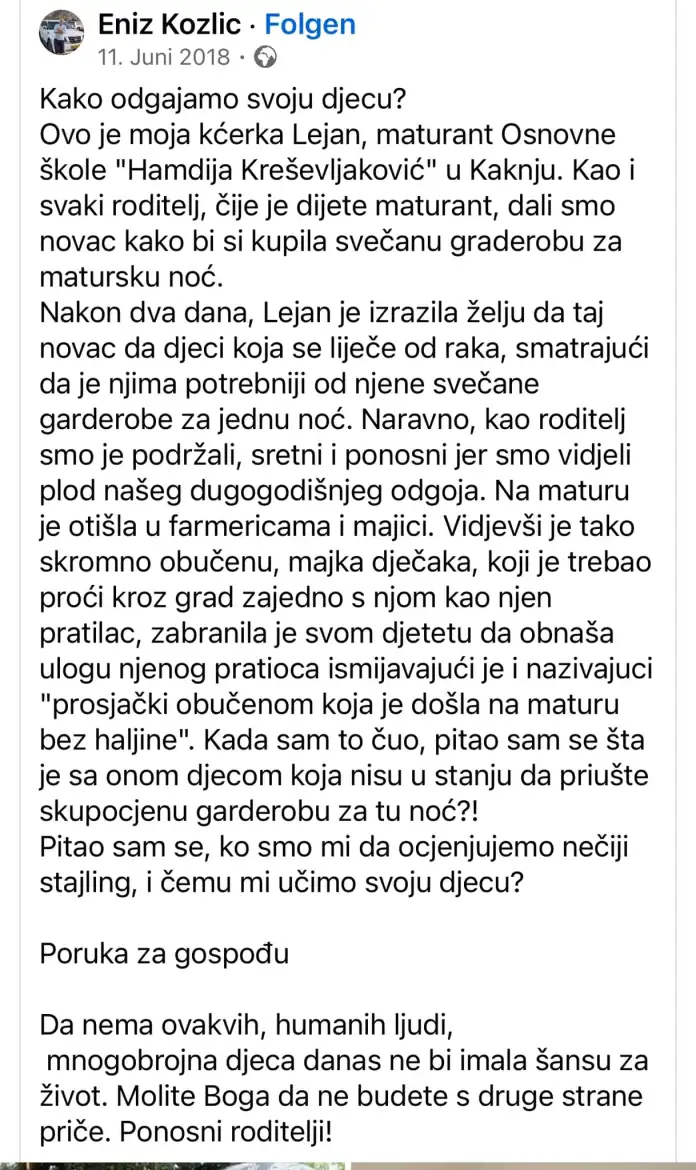 Djevojčica je na maturu došla u hlačama i majici: “Novac dajem za djecu oboljelu od raka, a na maturu se može i bez haljine.”
