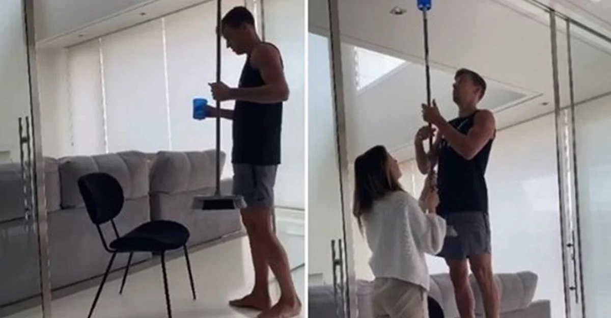 Llorente je uzeo posudu s vodom i zatim je podupreo s metlom, zovnuo je djevojku da pridrži metlu, kako bi on odradio još "nešto", a kada je ona uzela metlu 25-godišnjak je izmakao stolicu, počeo se smijati i ostavio djevojku da drži metlu i gleda u posudu s vodom...