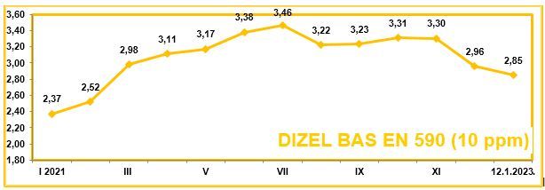 Prema podacima Vanjskotrgovinske komore BiH, u drugoj sedmici 2022. godine prosječna cijena dizela po litru bila je 2,29, a benzina 2,34 KM. Dvije godine radnije prosječna cijena dizela po litru bila je 1,80, a benzina 1,85 KM.