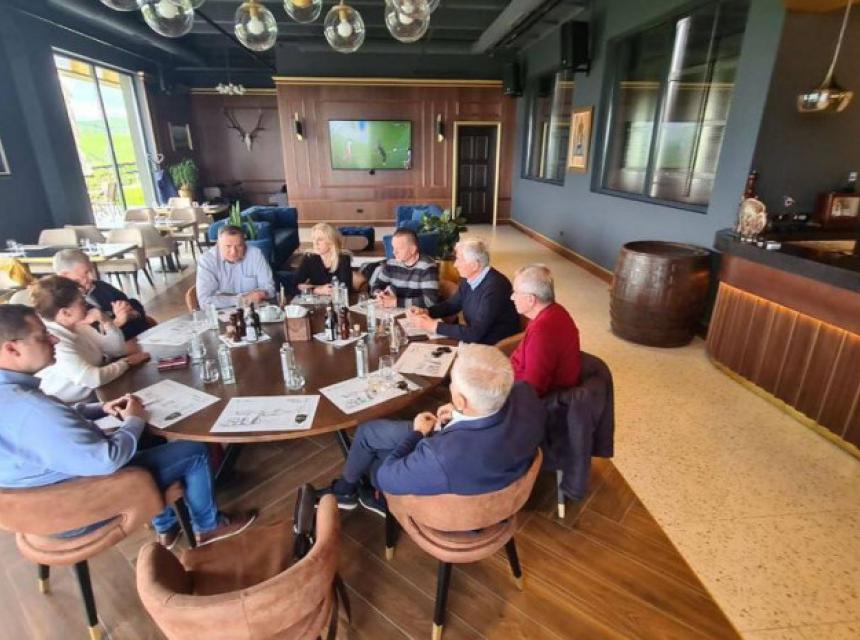 Član Predsjedništva Bosne i Hercegovine i lider SNSD-a Milorad Dodik razgovarao je danas sa najbližim saradnicima u jednom ugostiteljskom objektu, saopćeno je na Twitter profilu SNSD-a.