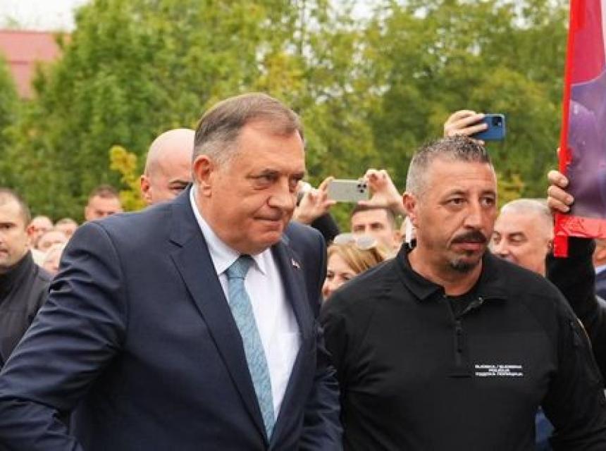 Predsjednik Republike Srpske Milorad Dodik obratio se novinarima nakon današnjeg ročišta u procesu koji se vodi protiv njega i direktora Službenog glasnika RS-a Miloša Lukića u Sudu BiH.