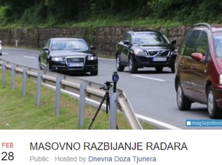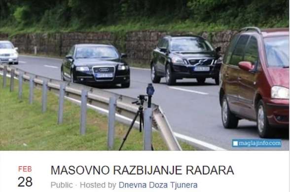 Nakon što je vozač koji je bacio mobilni radar preko zaštitne ograde na putu kod Žepča privukao veliku pažnju javnosti, korisnici Facebook grupe "Dnevna Doza Tjunera" odlučili su organizirati događaj pod nazivom "Masovno razbijanje radara".