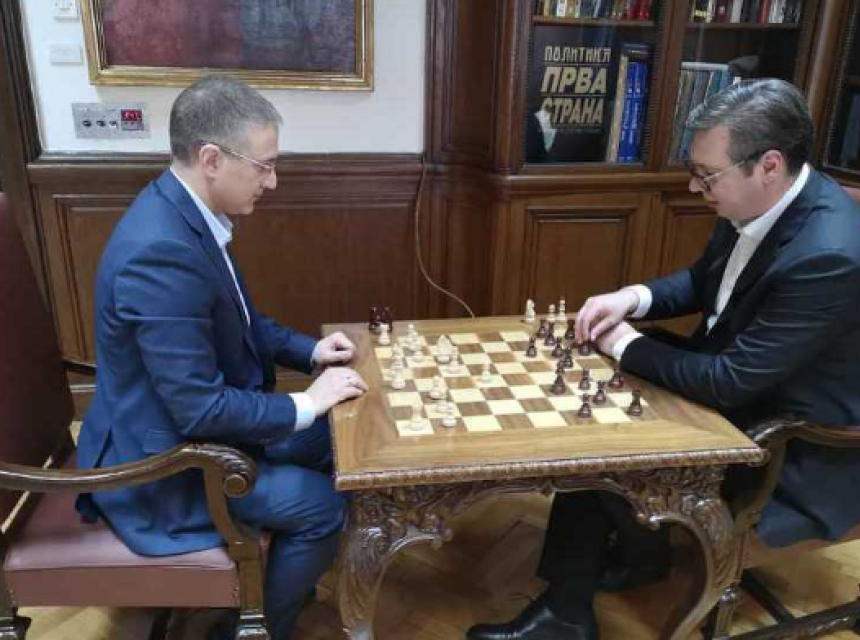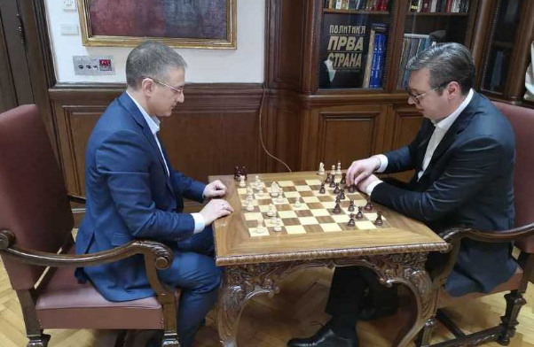 Na Twitter profilu predsjednika Srbije Aleksandra Vučića objavljena je fotografija iz zgrade Predsjedništva gdje se vidi kako Vučić i ministar policije Nebojša Stefanović igraju šah.