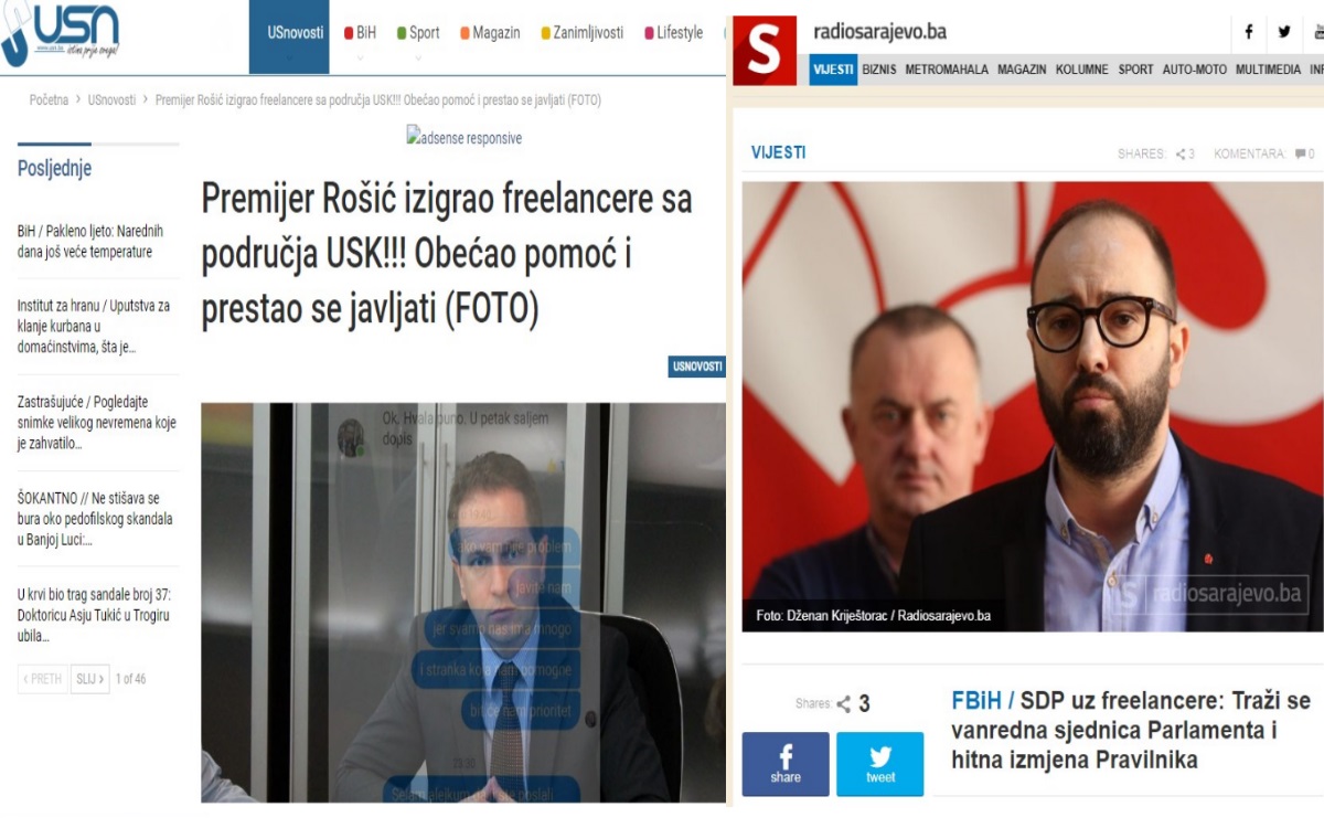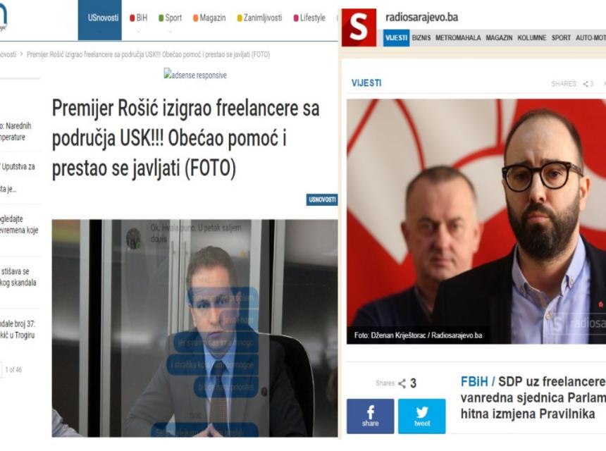 Tako je portal USN.BA ovih dana izvjestio da je Premijer Rošić izigrao freelancere sa područja USK!!! Obećao pomoć i prestao se javljati