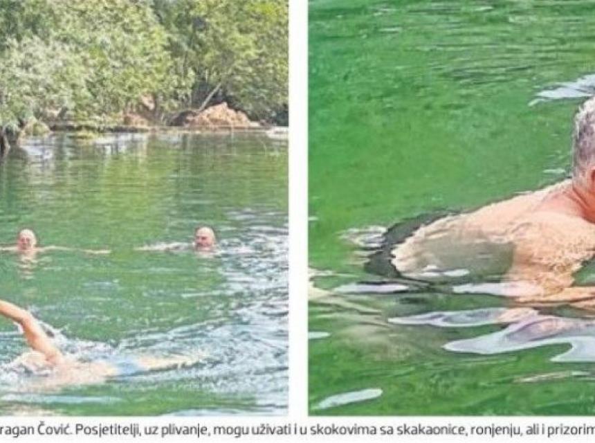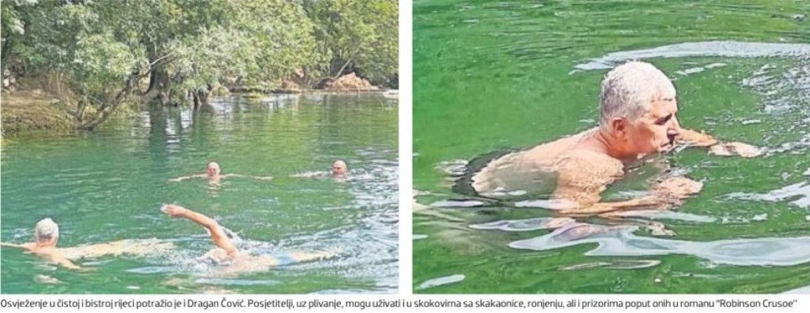 "Osvježenje u čistoj i bistroj rijeci potražio je i Dragan Čović. Posjetitelj, uz plivanje, mogu uživati i u sokovima sa skakaonice, ali i prizorima poput onih u romanu Robinson Crusoe", prenosi "Večernji".