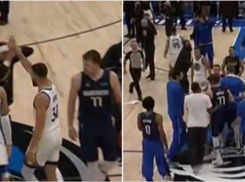 Dončić je prilikom odlaska na klupu na pauzu nešto dobacio Stefu Kariju (Steph Curry), koji ga je provocirao u prve dvije utakmice finala Zapada. Kasnije je Dončić krenuo u obračun u kojem su ga spriječili saigrači.
