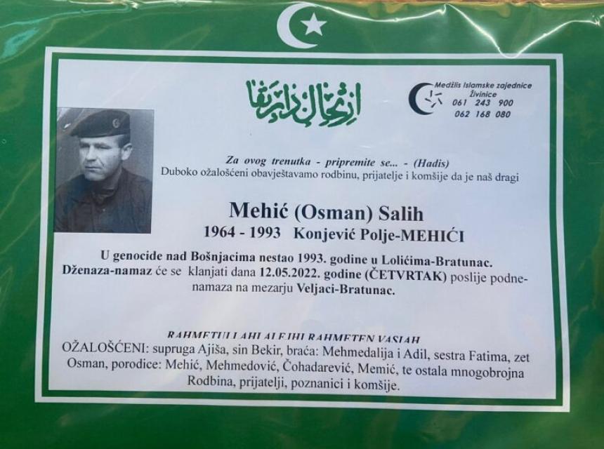 U Lolićima gdje im je trag izgubljen nestao je zajedno sa Salimom Kadrićem iz Kadrića koji se također ukopava zajedno sa Salihom na mezarju Veljaci 12. maja 2022. godine nakon podne namaza.