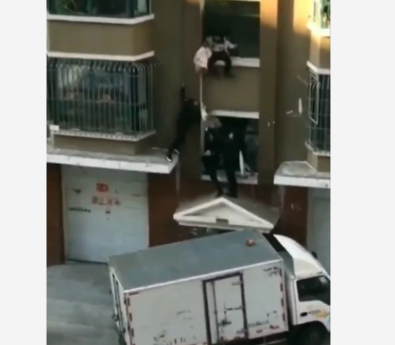 Na snimci se vidi kako Li hvata bebu koju je majka doslovce bacila s prozora. Kada su bebu uhvatili odveli su je na sigurno, a kasnije su pomogli i majci bebe.