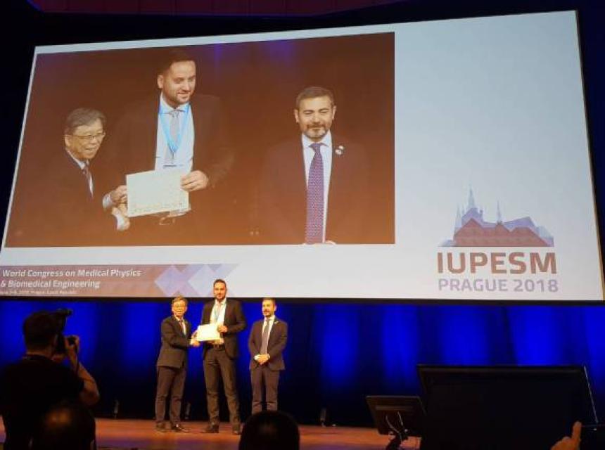 Doc. dr. Almir Badnjević dobio je, zajedno sa njegovim timom, nagradu za najbolji članak i istraživanje iz oblasti kliničkog inžinjeringa za 2018. godinu, na ceremoniji zatvaranja Svjetskog kongresa medicinske fizike i biomedicinskog inžinjeringa IUPESM 2018. u Pragu, prenosi agencija Patria.
