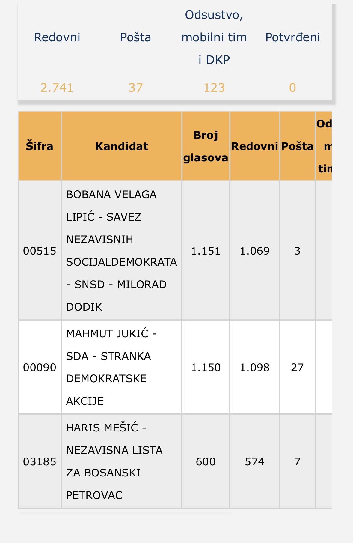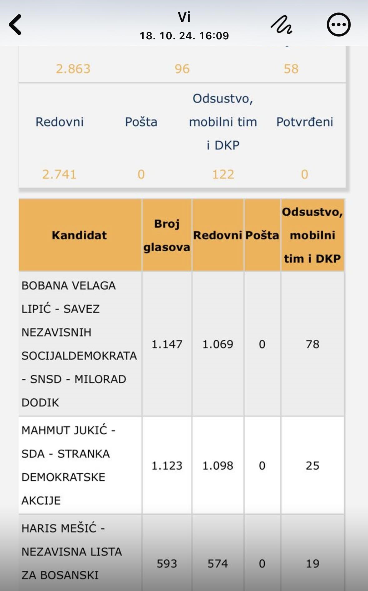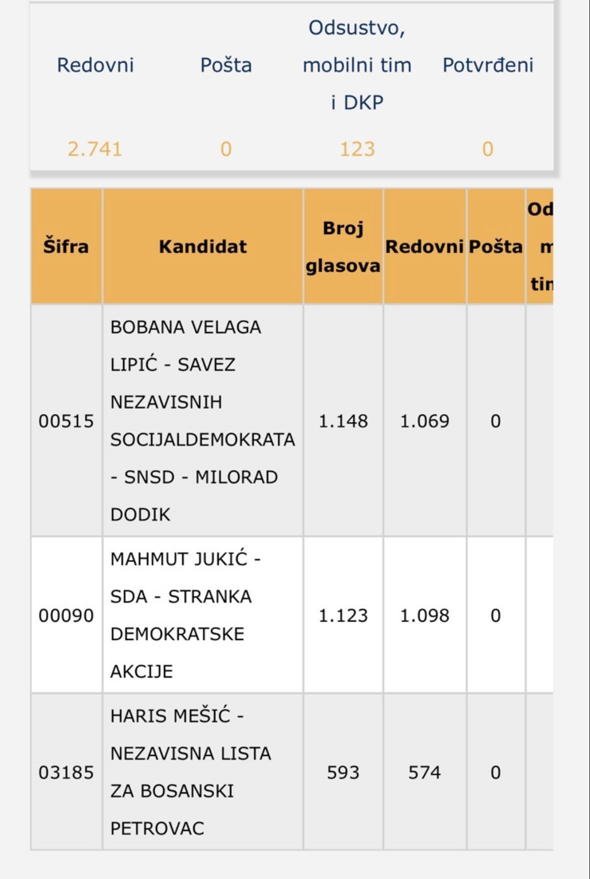 Nakon što je CIK BiH objavio i broj glasova koji su pristigli poštom vidljivo je da je kandidat SDA dobio veći broj glasova i da se kad se to ubaci, nalazi na jedan glas zaostatka za kandidatkinjom SNSD-a. Sada rezultati pokazuju 1151 za Bobanu Velagu Lipić, a 1150 za Mahmuta Jukića. Onaj ‘sporni’ glas zasad određuje načelnika općine i postavlja se pravo pitanje, kako je došlo do toga da se taj glas pojavio i jesu li oni koji vode procese znali i uticali da se to tako razriješi.