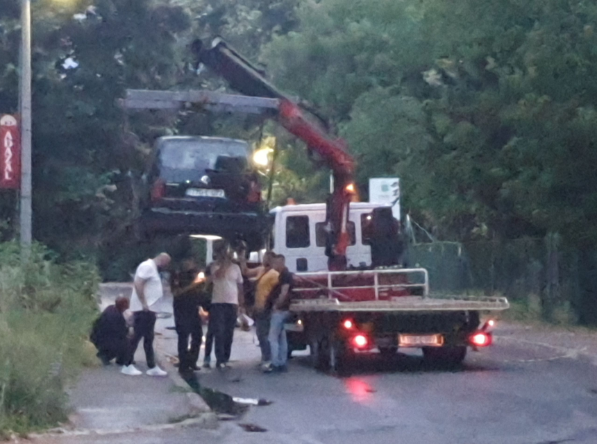 U jednom trenutku vozilo je bilo na autodizalici, tada su gledali ispod njega, a onda je ponovo spušteno.
