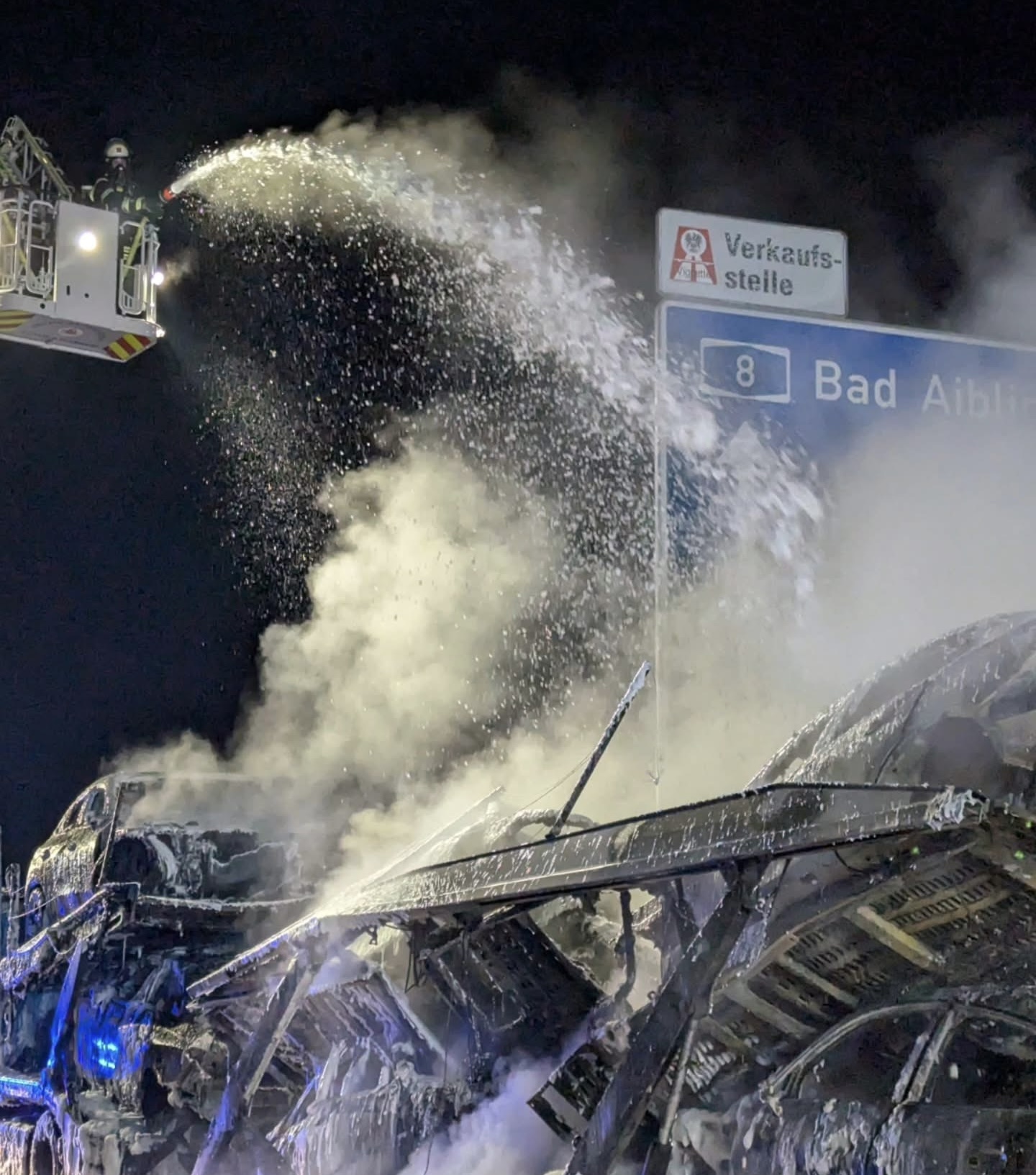 Plamen je bio vidljiv kilometrima daleko, a gust dim prekrio je autocestu. Zbog sigurnosnih razloga, A8 je u tom dijelu bila u potpunosti zatvorena, što je dovelo do formiranja višekilometarskog zastoja, koji se protezao sve do priključka Holzkirchen. U jednom trenutku kolone su dosezale i do 15 kilometara.