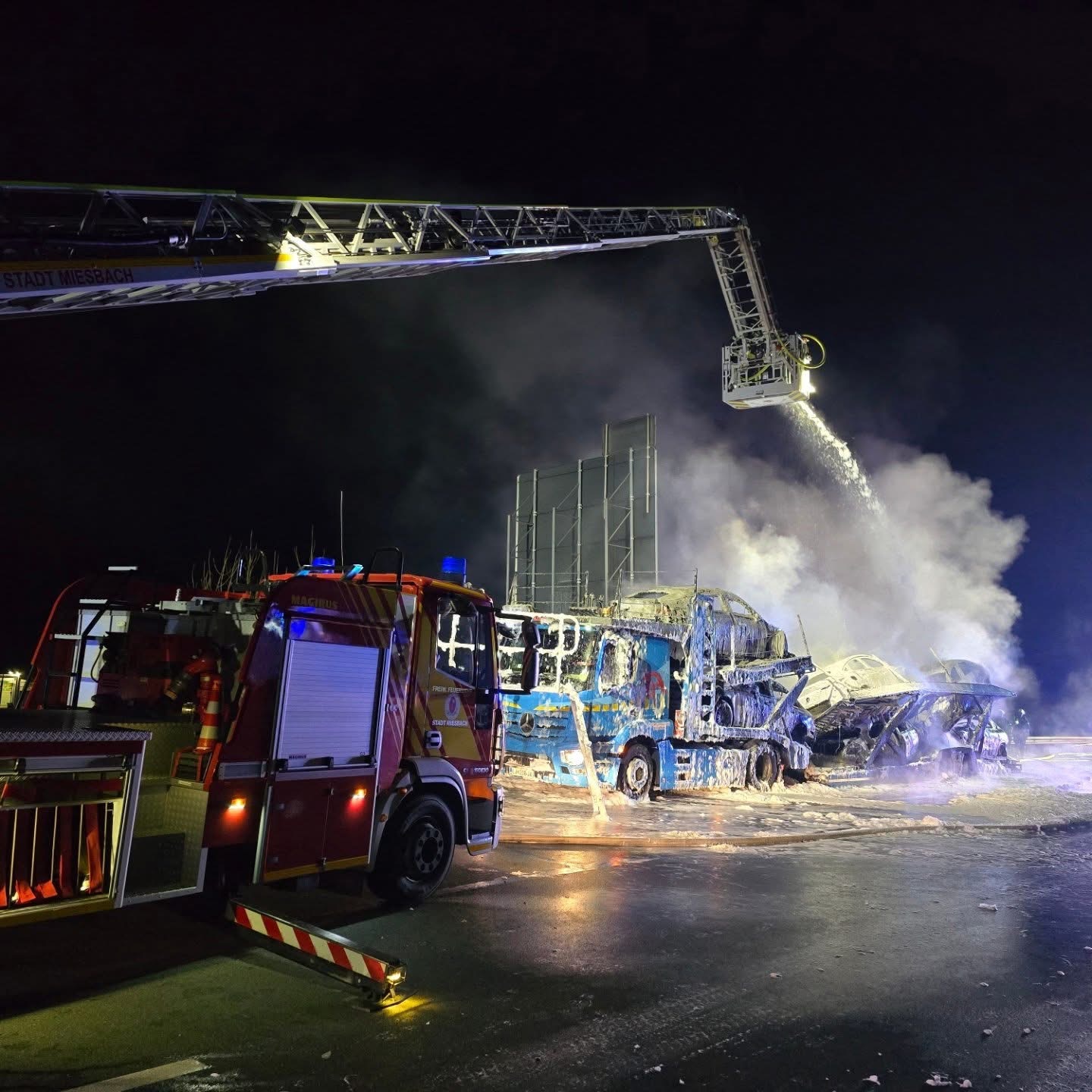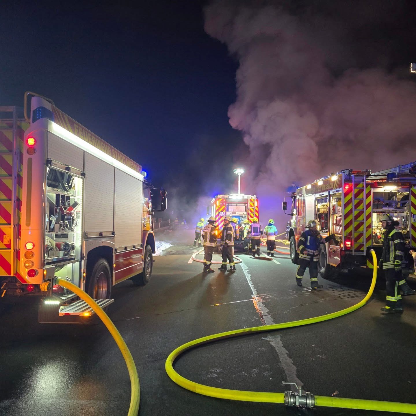 Na teren su odmah upućene vatrogasne jedinice iz Irschenberga i Miesbacha, koje su satima gasile vatru. Nakon što je požar lokaliziran, uslijedili su složeni radovi na uklanjanju izgorjelih vozila, za koje je korištena i specijalna dizalica.