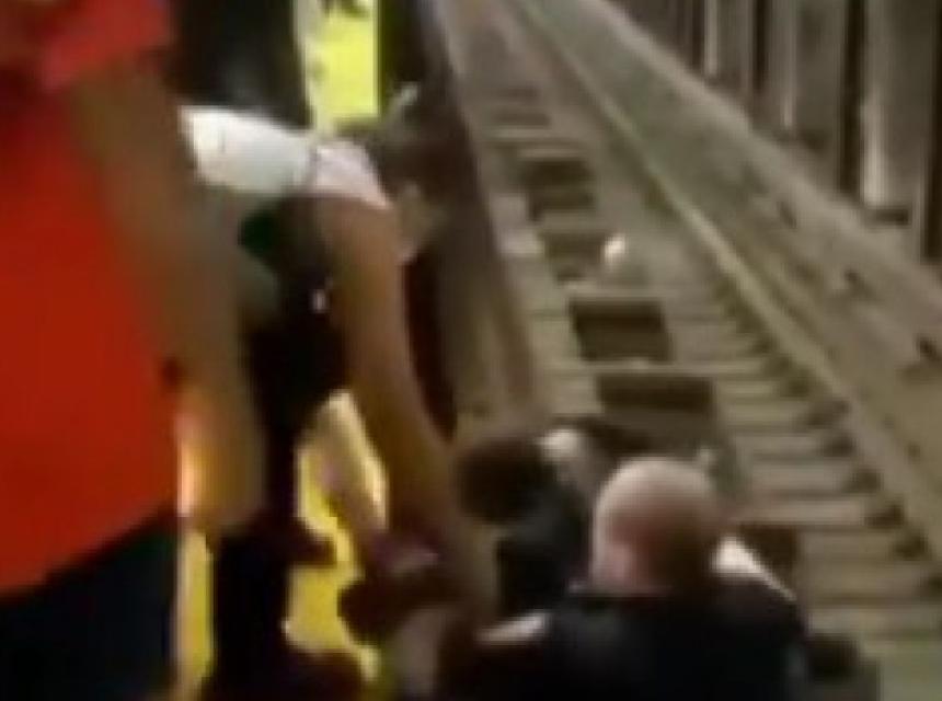 Imao je problema da podigne muškarca, ali je onda na prugu skočio i jedan prolaznik i pomogao da onesviještenog čovjeka sklone sa pruge.