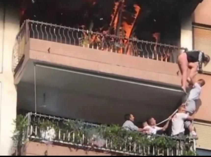 "Kolege su me pozvale, rekle da se stan zapalio, da djevojka gori. Tamo smo potrčali, prvo smo probali vrata da razvalimo, nismo mogli. Komšija ispod je otvorio vrata, na terasu smo izašli svi. Ona je vikala: 'Gorim, gorim'. Moji su me vezali, držali su me. Ona je bila pri sebi, uhvatila se malo za ogradu, malo je skočila. Ja sam je uhvatio, onda smo je spustili na terasu", ispričao je radnik Pavle Gavura.