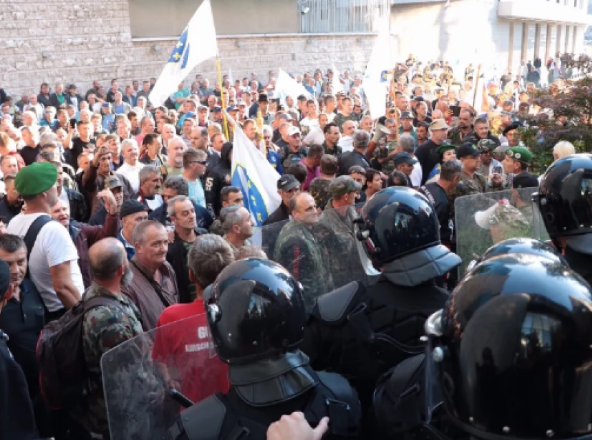 Kada su okupljeni borci saznali da nisu prihvaćeni svi amandmani počeli su bacati flaše i druge predmete prema ulazu, a pomjerili su i zaštitnu ogradu prema policiji.