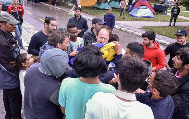 Asaf iz Sirije pita nas šta radimo, zašto ne pomognemo. Pokazujemo na ćošak parka, nekoliko metara od šatora u kojem spava hrpe su smeća, kartonske kutije od hrane, ostaci salate... pitamo plaše li se bolesti, zašto to neko ne očisti. Pitamo i ko je bacio komade nakvašenog hljeba po cvjetnjaku...