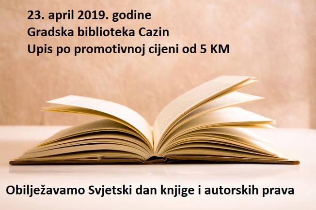 U utorak, 23. aprila 2019. godine, u Gradskoj biblioteci Cazin, povodom Međunarodnog dana knjige i autorskih prava, biće upriličen još jedan upis za naše sugrađane po sniženoj cijeni od 5 KM.