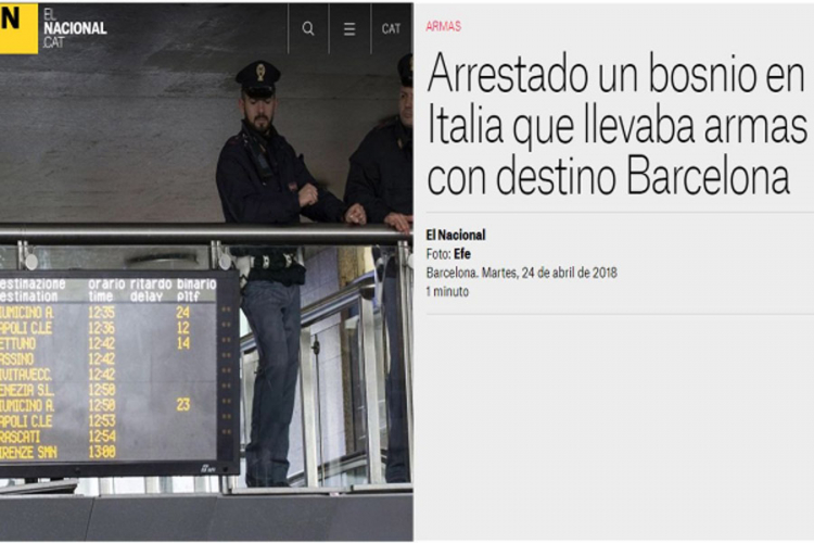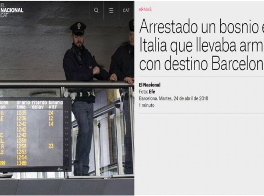 Italijanski karabinjeri su uhapsili danas 54-godišnjeg bh. državljanina na sjeveroistoku Italije, koji je u automobilu krio arsenal oružje koje je, navodno vozio ka Barseloni, objavili su španski mediji.