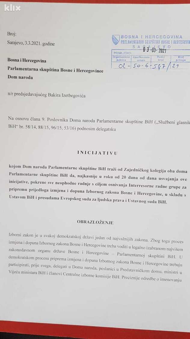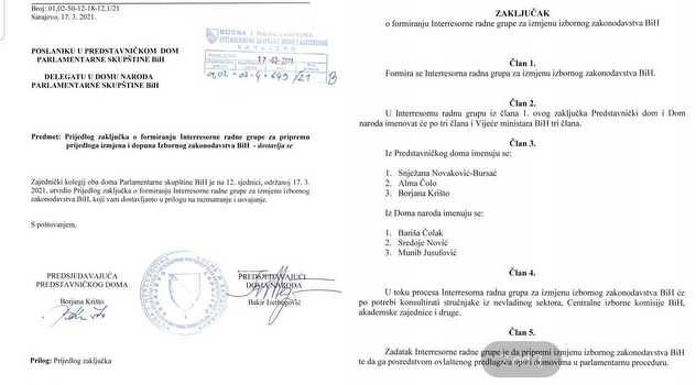 Ipak, zanimljivo je da je delegat SDP-a u Domu naroda Denis Bećirović još 3. marta uputio inicijativu za formiranje Interresorne radne grupe u kojoj je tražio da bude formirana od članova Doma naroda, Predstavničkog doma, ministara iz Vijeća ministara i članova CIK-a.
