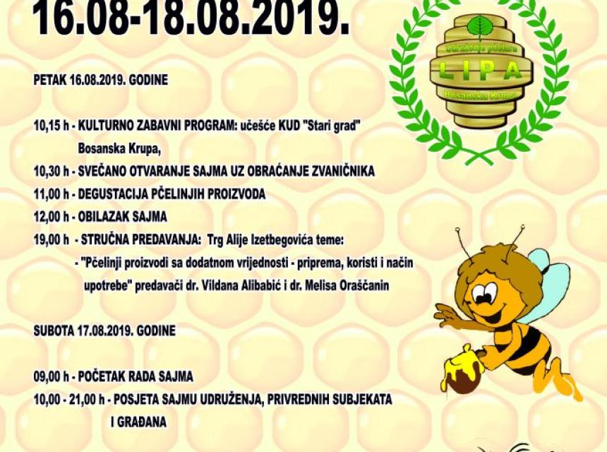 U sklopu projekta „Bosanska Krupa-grad malih sajmova“ u periodu od 16. do 18. augusta biće održan deseti po redu Sajam meda. Sajam će se održavati na otvorenom, odnosno bosanskokrupskom trgu „Alije Izetbegovića“.