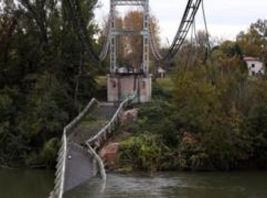 Viseći most dugačak 150 metara u Mirepoix-sur-Tarnu, u blizijni Toulousea, srušio se oko osam sati ujutru po lokalnom vremenu kada su ga prelazili kamion i eventualno kombi, saopćio je ured lokalnog tužioca. Most je limitiran za vozila do 19 tona.