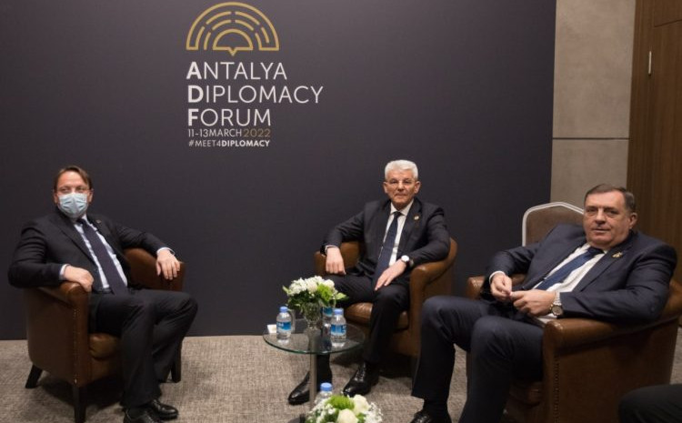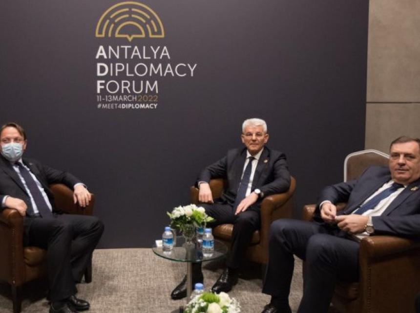 Članovi Predsjedništva BiH i povjerenik Varhelji razgovarali su o aktualnoj političkoj situaciji i evropskom putu Bosne i Hercegovine na marginama Antalijskog diplomatskog foruma u Antaliji.