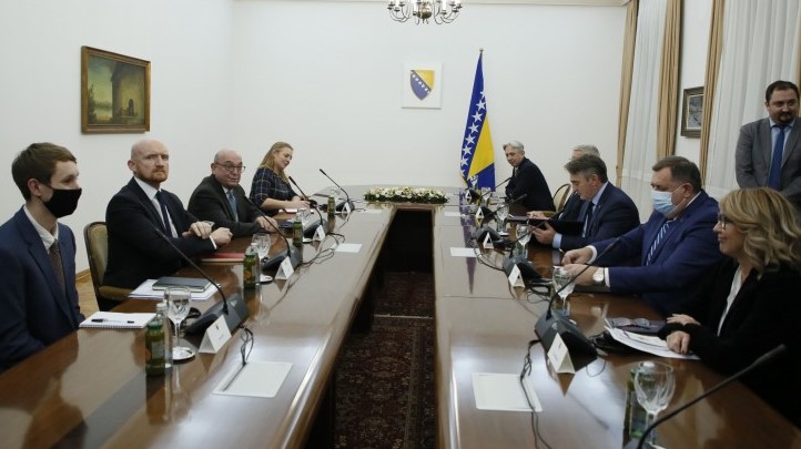 Džaferović je večeras nakon sastanka sa specijalnim izaslanikom premijera Velike Britanije za zapadni Balkan Stuartom Peachom u Sarajevu naglasio da je to vrlo važan sastanak na kojem su razgovarali o aktuelnoj situaciji u državi, ali da je bilo govora i o slanju dodatnih trupa u okviru misije EUFOR-a.